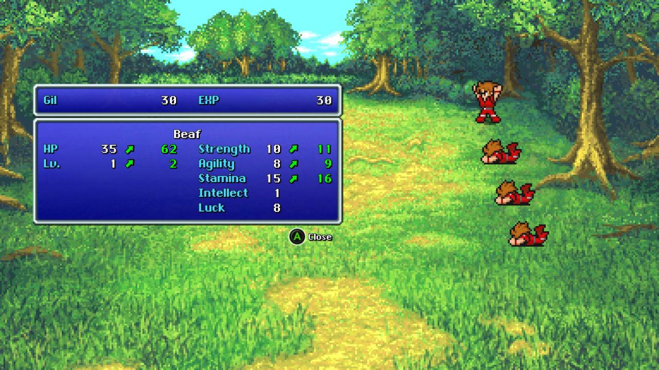 Here are some screenshots from Final Fantasy I using the SNES FF6 font:
