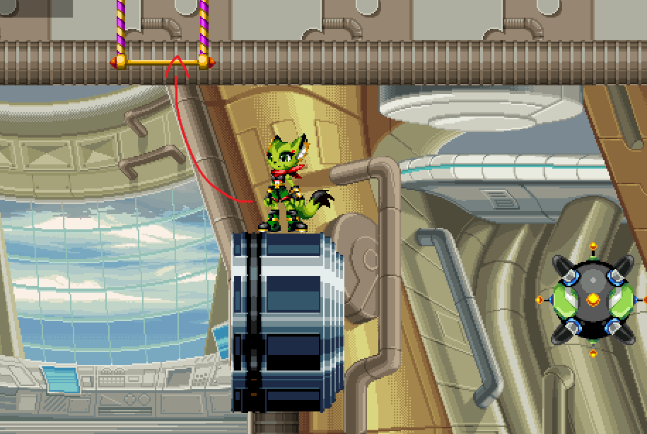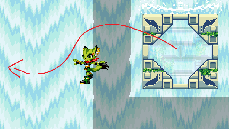 when you’re on the right platform, make sure you’ll notice this flying crystal orb, as you might need to head right a bit