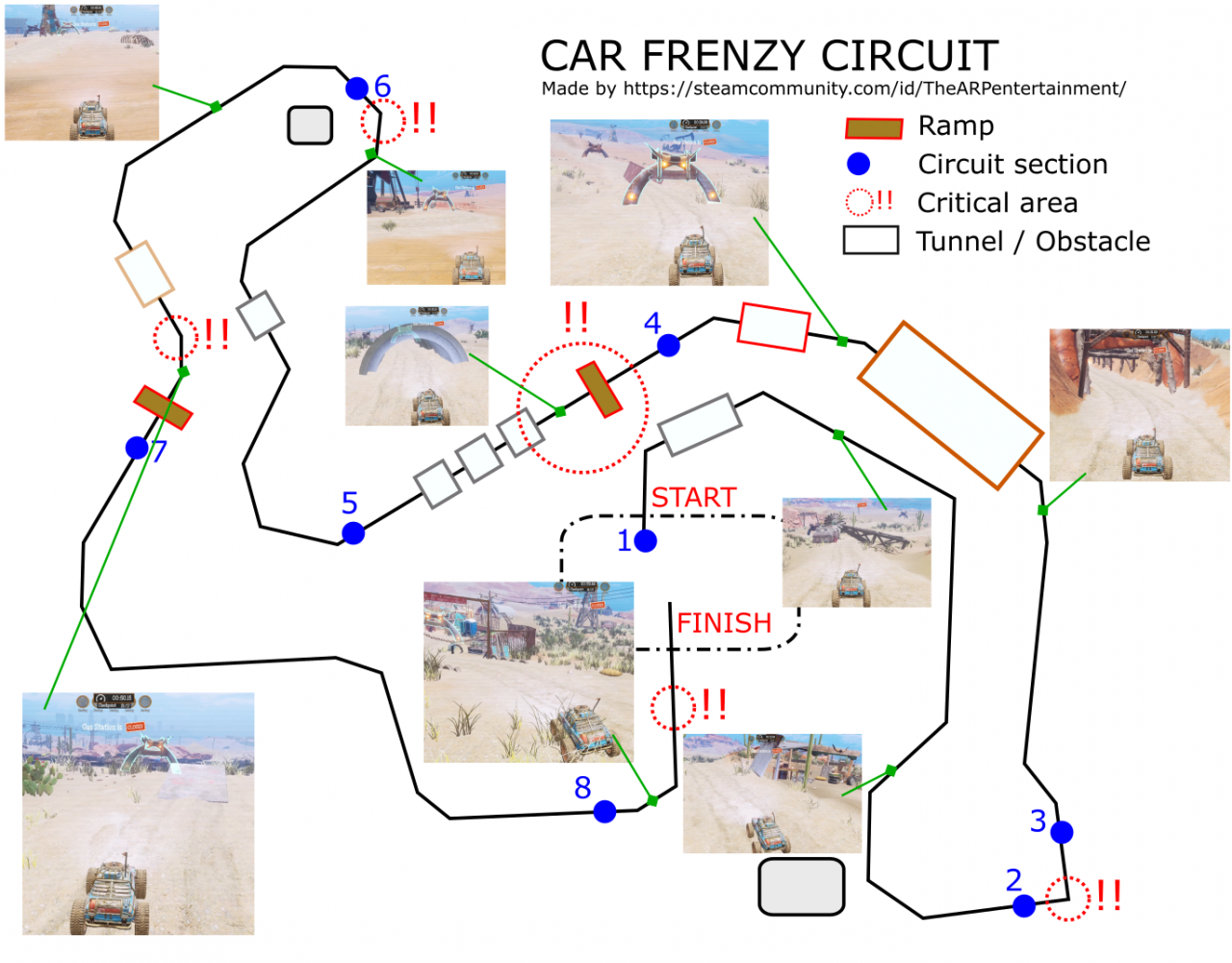 It is important to note that in order to optimise these sections you will have to make many attempts as most of them require you to go at full speed and know how to turn at the right moment while maintaining your speed.
