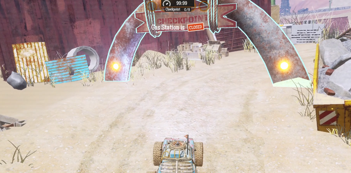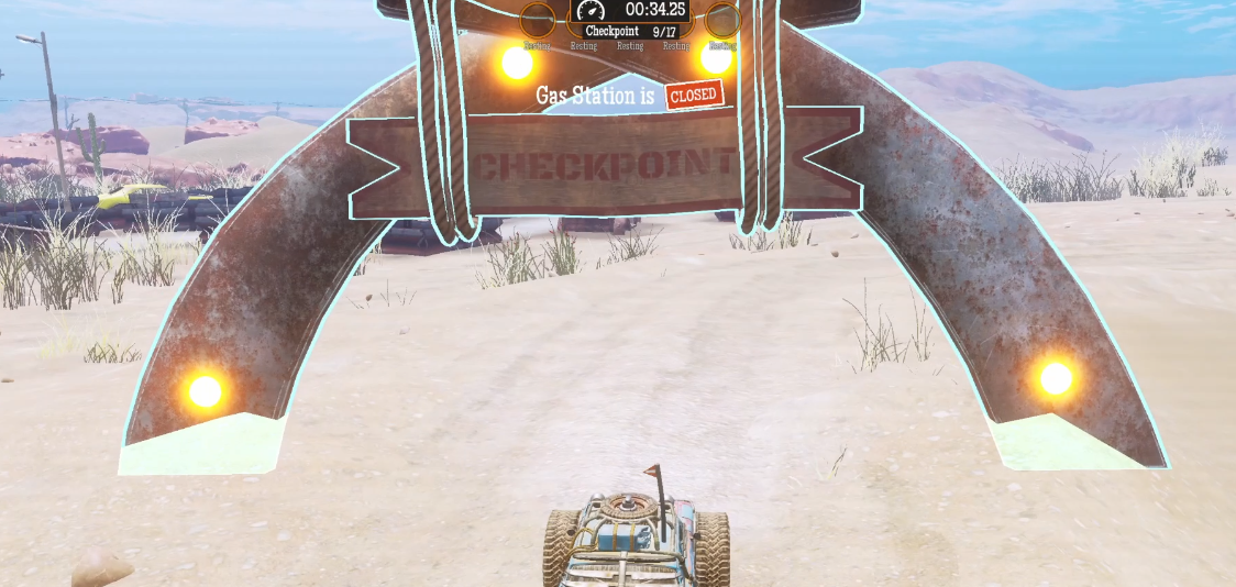 You will bounce off a sand mountain before the checkpoint. Right on the bounce, stop accelerating and regulate with the brake in case the car gets too out of control.