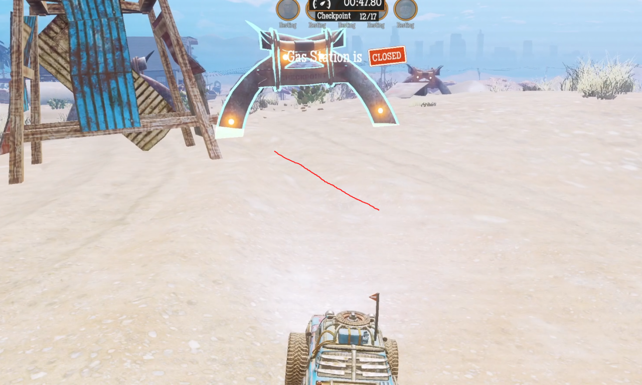 There is a shortcut past the third checkpoint to go more directly to checkpoint 4, avoiding the sharp turn under the structure. However, I do not recommend it because it is somewhat difficult to control.
