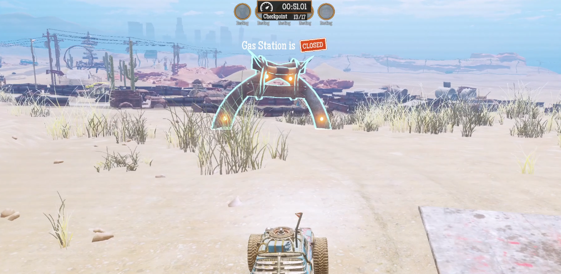 Do not brake during this section. After passing checkpoint 10, take a sharp bend and drive through checkpoint 11 as straight as possible, leaving the dirt road afterwards.