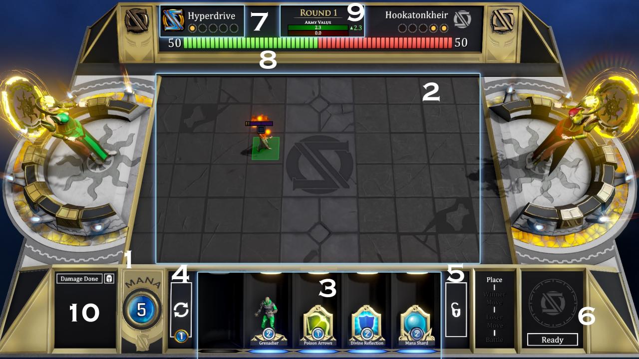 - Mana: Use your available mana to play units and powers onto the board. The mana cost is displayed on each piece.