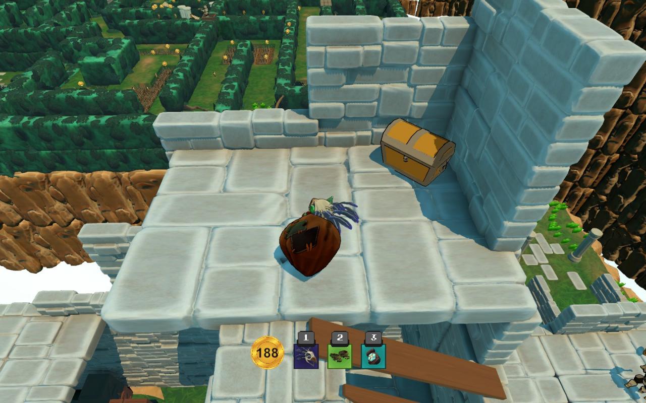 You can take the fifth chest only after you get the Slime Boots right here in the maze. Having received them, we go to the very middle of the maze, press the button 2 and jump over the wall to the chest.