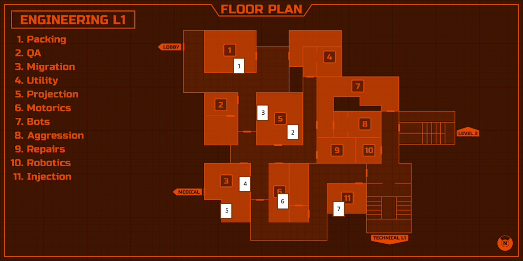 - Workshop: On the desk next to the three monitors (Hazard level raising order)