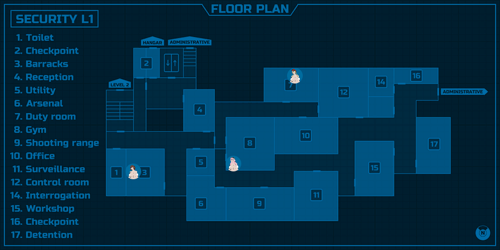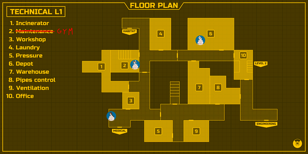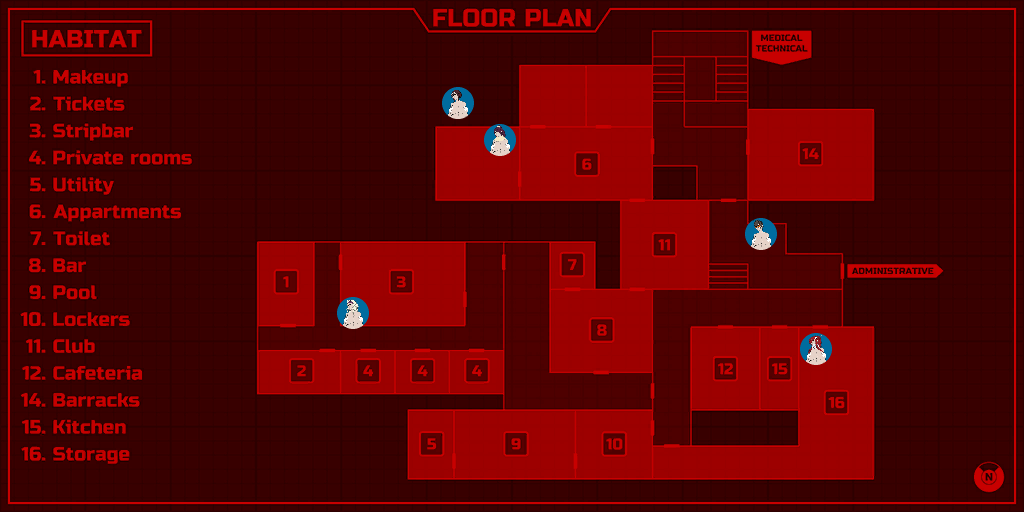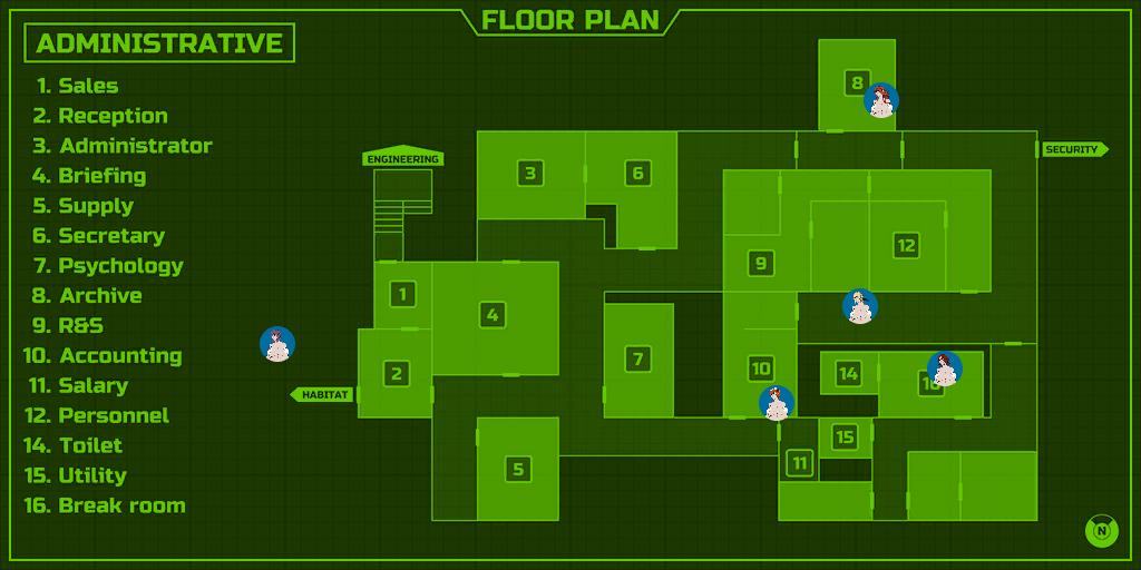 - Hallway: The magnet is attached to the map of the Habitat area in the main hallway that you enter from Administrative.