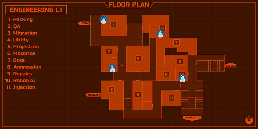 - Robotics: When you enter the room, the magnet is on the side of the left server rack.