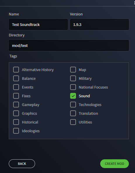 Now just click “Create Mod” and boom, now you have a mod folder which is located in “Documents\Paradox Interactive\Hearts of Iron IV\mod”