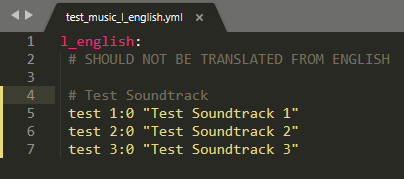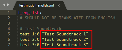 Rename these like “test_music_l_english” and “test_musicplayer_l_english” when it is inside your mod’s “localisation” folder (Example)