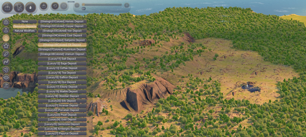 To place a Point of Interest, select the “Point of Interest” button on the menu, then click on the category you wish to place: Resources Deposit or Natural Modifiers. Select the element you wish to place, hover the area where you wish to place it, then click the middle-mouse button to place it.
