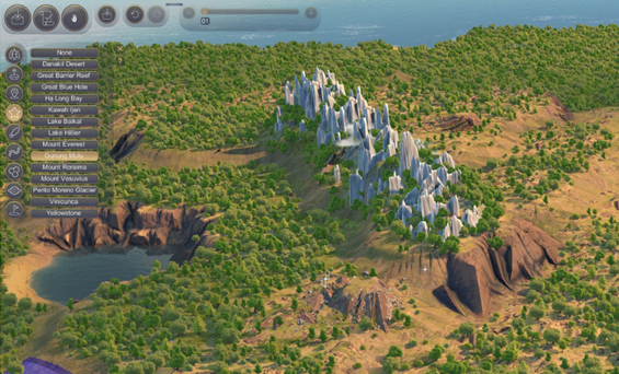 To place a Natural Wonder, select the “Natural Wonder” button on the menu, then click on the Wonder you wish to place, hover the area where you wish to place it, then click the middle-mouse button to place it.
