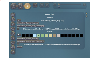 Once your two files are in the Documents/Humankind/Maps, launch the editor and click on the “Import button”. The import interface is divided in two: