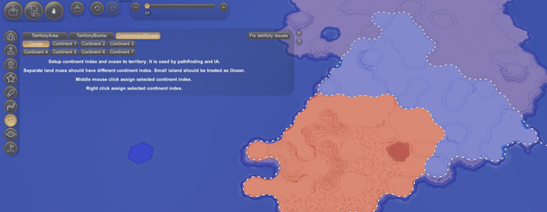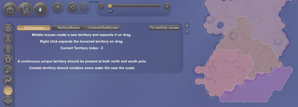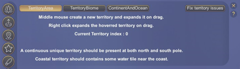 Note: the error message concerning territories is sometimes misleading, saying that “One of the Ocean territories contains more continent than water”, when it’s the opposite (a Continent containing too much water). It will be fixed soon.
