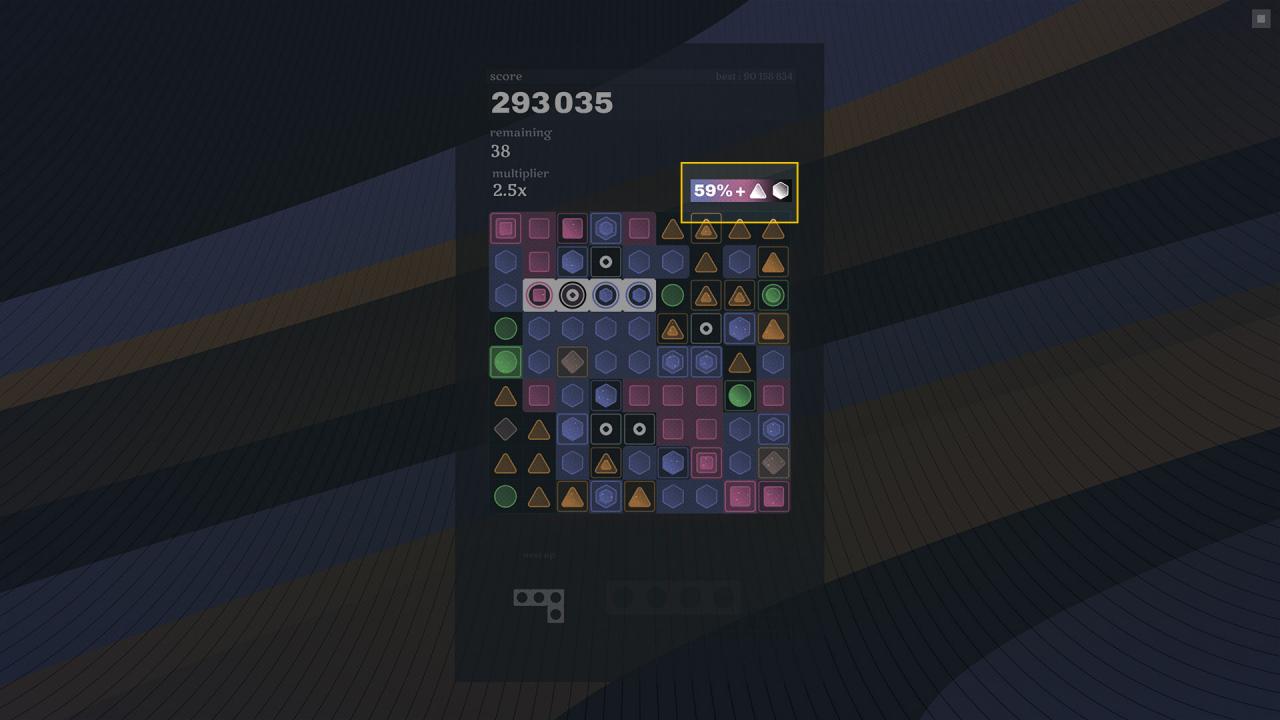 If you’re doing well by now then you’ve added perhaps a few extra Tetrominos beyond your 50. This is good, this is important. Now the goal is to just keep staving off the end. This isn’t easy and the end will come for you, but you can delay it. Omni bombs will still add extra Tetrominos at this point so just keep trying to generate them and match them. Keep your focus on big 4-Bomb matches and make it last as long as you can.