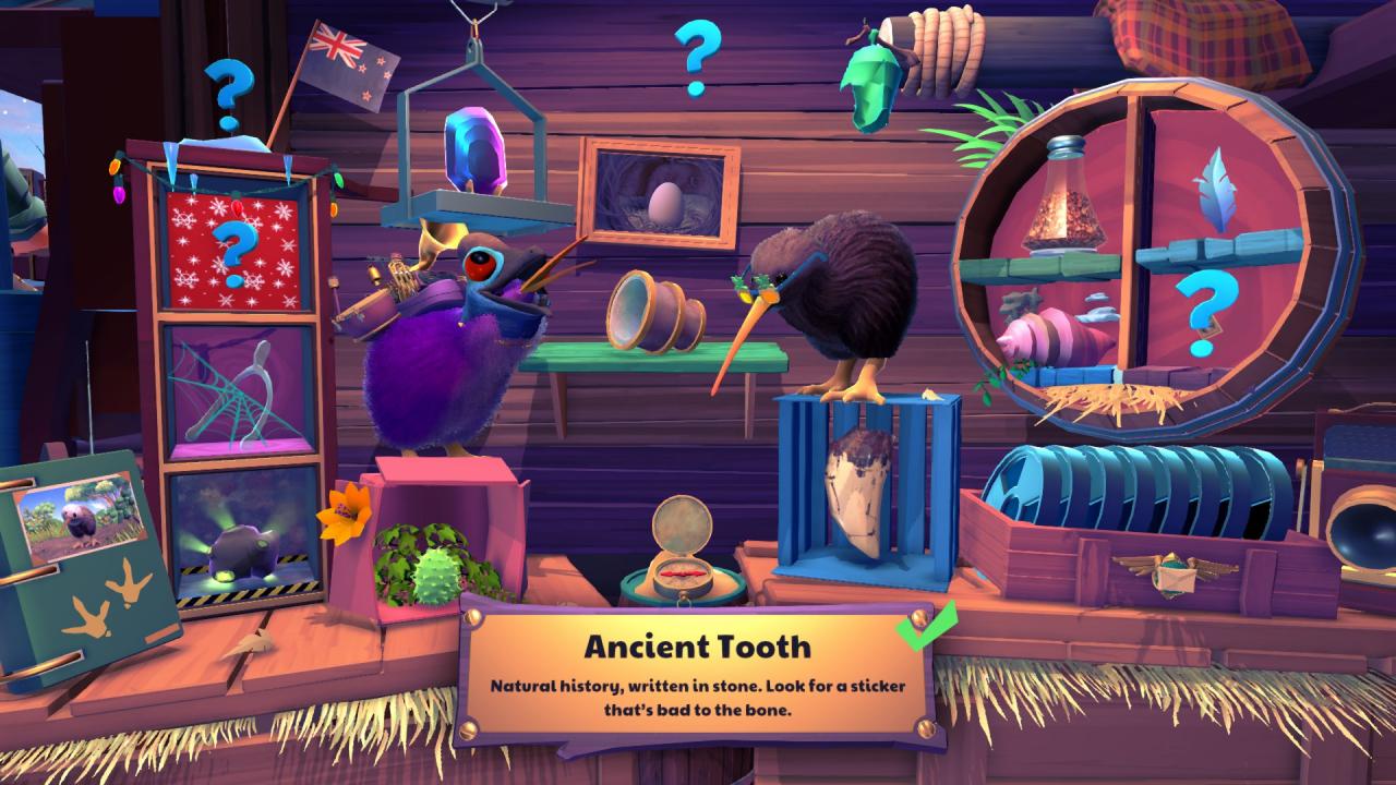 Pick up the dino sticker in the bottom left of the map. This sticker can be placed on any crate but will only drop the tooth if placed on the crate that contains the fossils. this package apears ramdomly so you will have to play until you get the fossil crate (can be annoying to get).