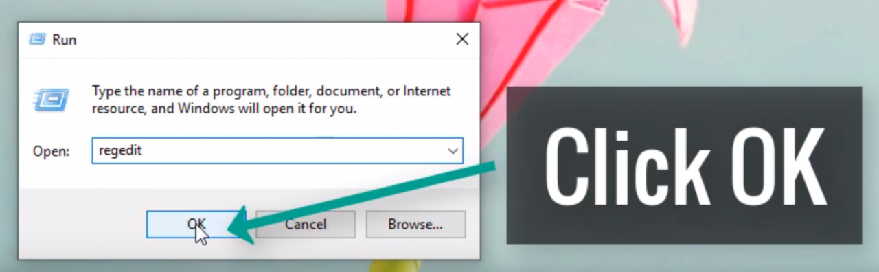 Type “regedit” in Run window and click “OK“.