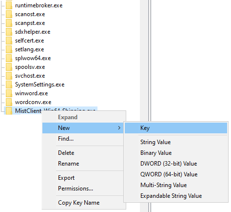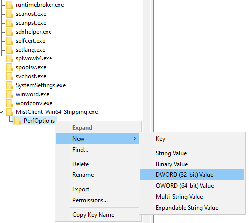 Name your new key “MistClient-Win64-Shipping.exe”