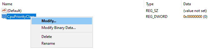 Name your new DWORD Value to “CpuPriorityClass“.