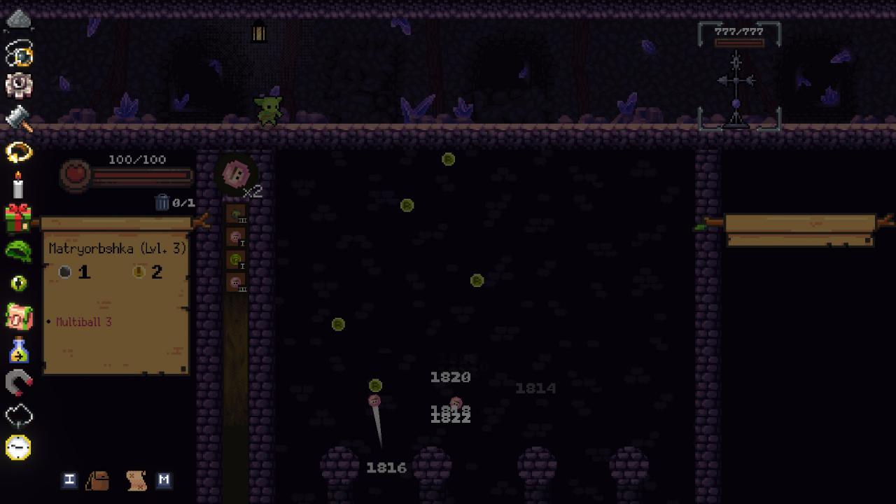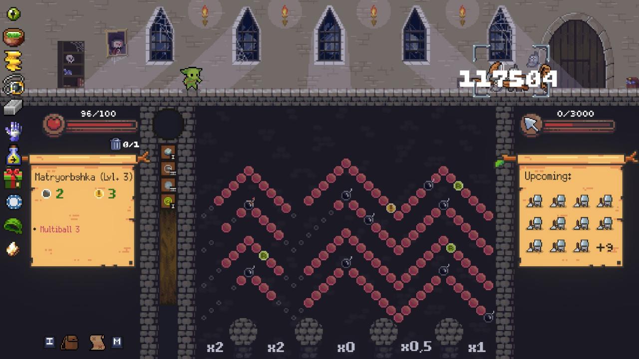 The Electropegnet helps you initially seek the refresh pegs, which will be especially good if you have Refreshing Punch. Having as many refresh pegs as you can is essential to accomplish this. Gunpowder can make the bombs extra useful. If you don’t have any relics that change base values (or add extra unnecessary damage), you’ll know you got enough pegs if the Matryorbshka reaches 1000 damage (or 2000 on a crit). The Matryoshka Shell can be a bit overkill, plus you can’t see the damage numbers to know if you hit enough pegs or not before you launch the attack.