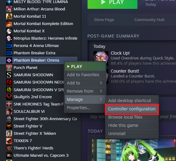 Right-click on your game in the library, click on Manage, and then Controller configuration. You need to have a controller connected, if not, the Manage section might not appear.