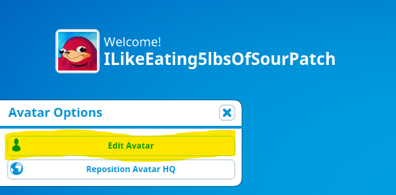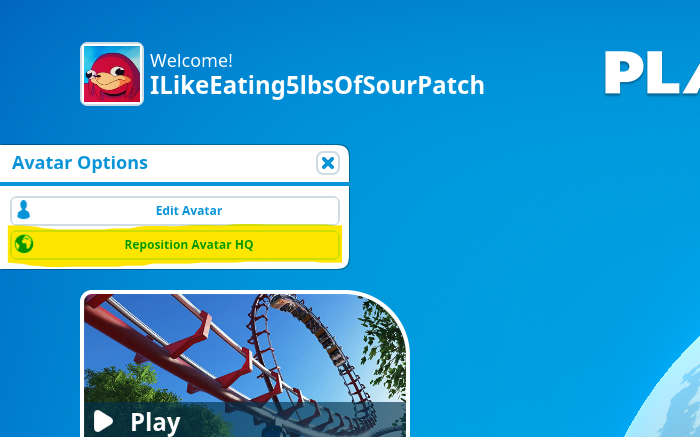 then click your profile picture (in this case ugandan knuckles) And Then Click Reposition Avatar HQ