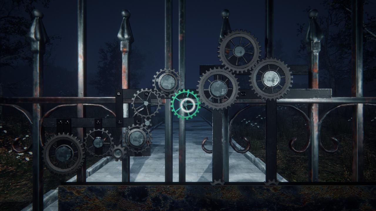 Mechanism – Now the park gates are open You need to grab a few items to get this gate open. In one of the rooms in the factory, you will find a locker with a padlock on it. The code to the locker is FED. Grab the key inside the locker. This key is for the bus in front of the school. Open the door and pass through the school bus. On a bench in front of the school is a bunch of cogs. Use those cogs on the gate next to the diner. This will be an annoying puzzle because if you get 1 cog wrong, the whole puzzle resets. So attached is a picture of the cogs I used. Its hard to make out but it can help get an idea.