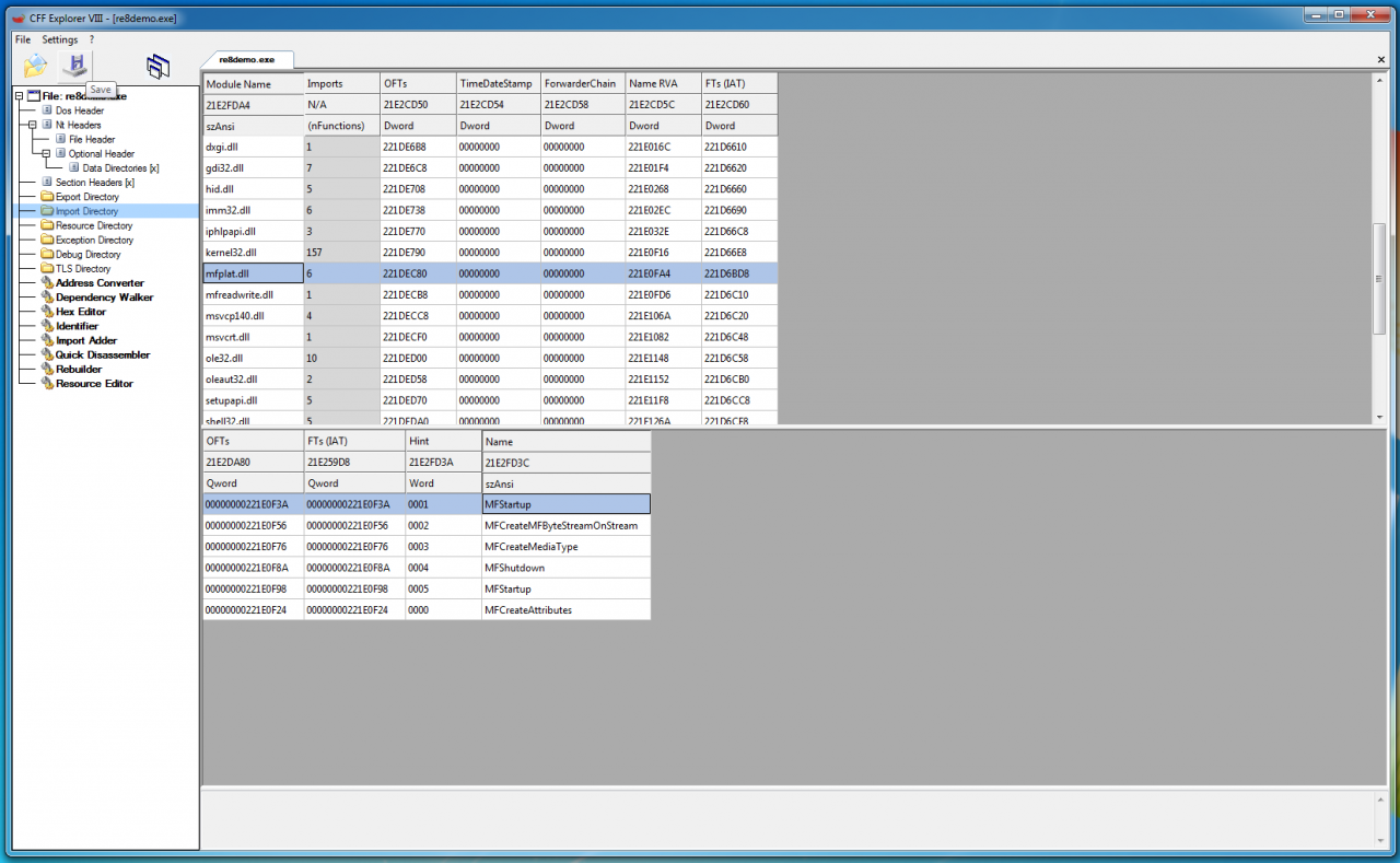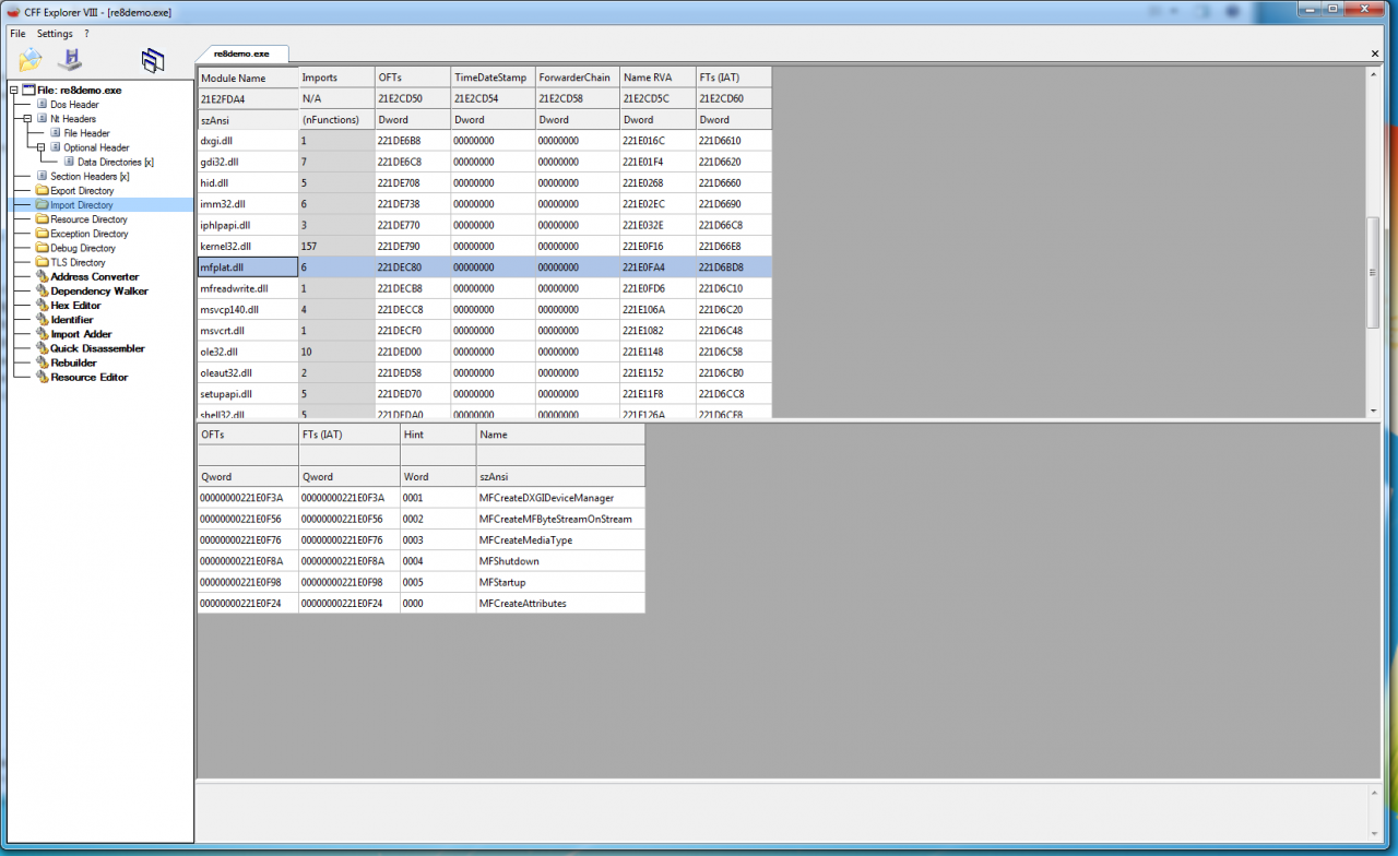 7. Select “Import Directory” on the left panel.8. Then select “mfplat.dll” module from the list.