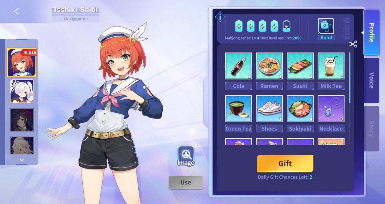 One thing to note is that the gifts obtained this way are usually “locked”. Locked gifts cannot be Recycled which means that they can only be used as gifts for characters to increase mahjong sense. If you’re thinking “Of course, that’s all I care about” then you don’t have to worry about gifts being locked. But Recycling is a way to for players to get extra free tickets for the gacha so it is better for you to use your locked gifts first before your unlocked ones so that you can use the unlocked gifts for Recycling. Appendix C will talk about Recycling more.