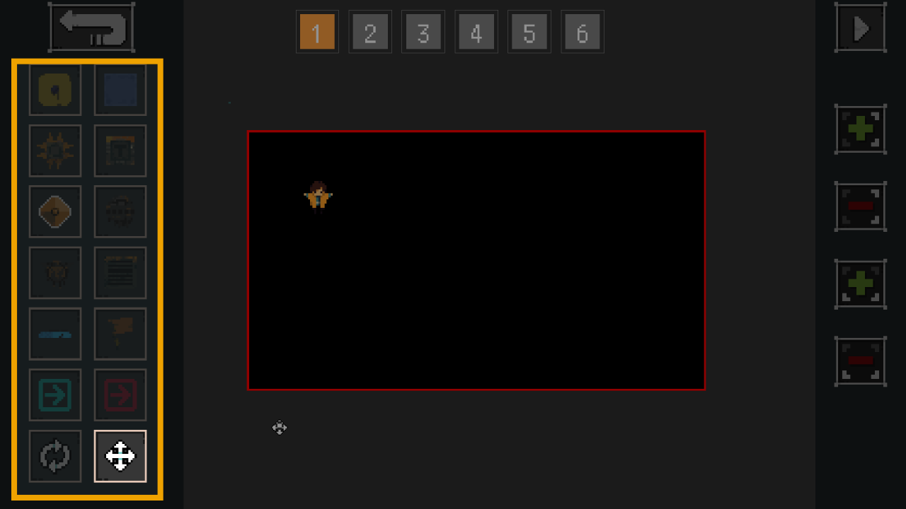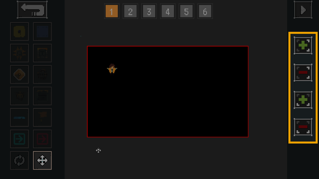 Button to test play room that is currently selected. In this screenshot, it is room 1. To exit out of test play mode, hit “esc”.