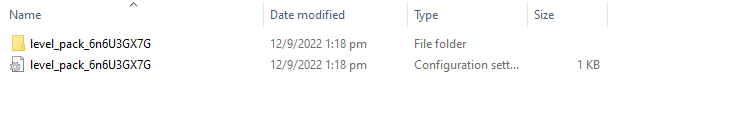 In the example below, it shows one level pack in the “level_packs” folder available.