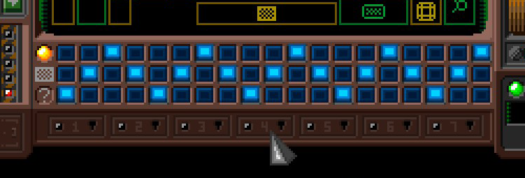 This is a tricky one. You need to make a snake-like pattern with the lit buttons. Problem is they lit up randomly so just getting this accidentaly is nearly impossible. The way to do it is to let all of the buttons light up. It will take some time so you’d better try it during day 9 where you will also be able to pick the mods. Get the cooling stuff and extra time for safety. Once you see this panel appear set its power to the maximum and wait until it shines blue while maintaining the other panels. When you get all 57 buttons to light up set the power to 1 and press the unnecessary buttons to get the pattern.