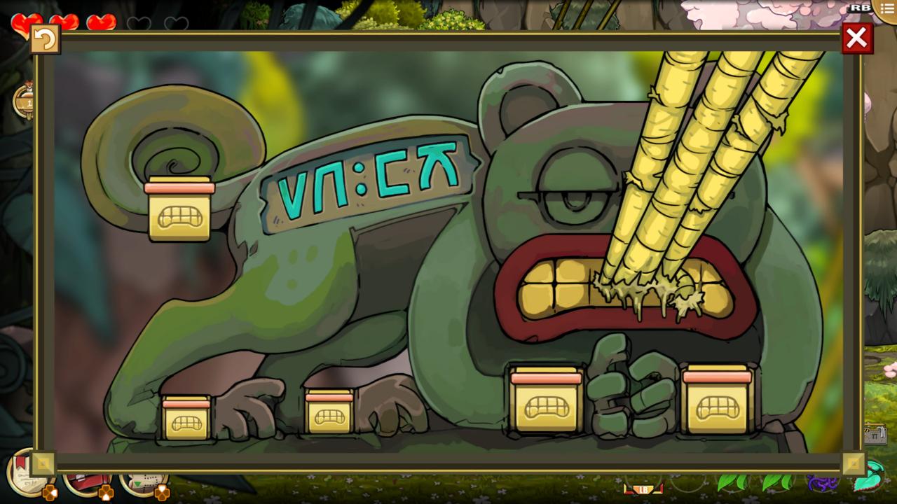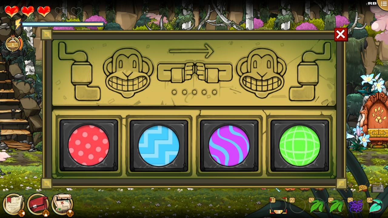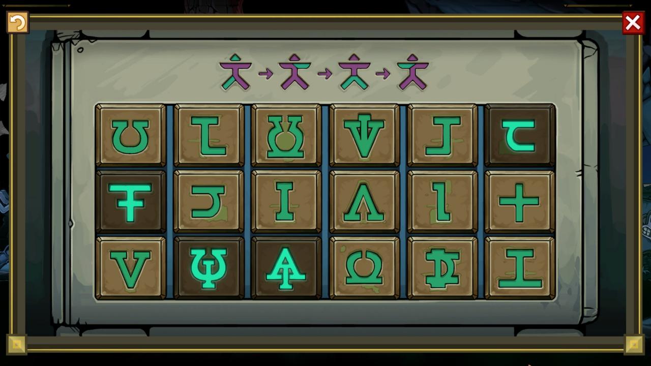 Take a look at the Monkey Statue to the left with symbols on it and combine the symbols at the Monkey Statue to the right in the correct order (2nd row 3rd; 1st row 2nd; 3rd row 3rd; 6th row 1st):