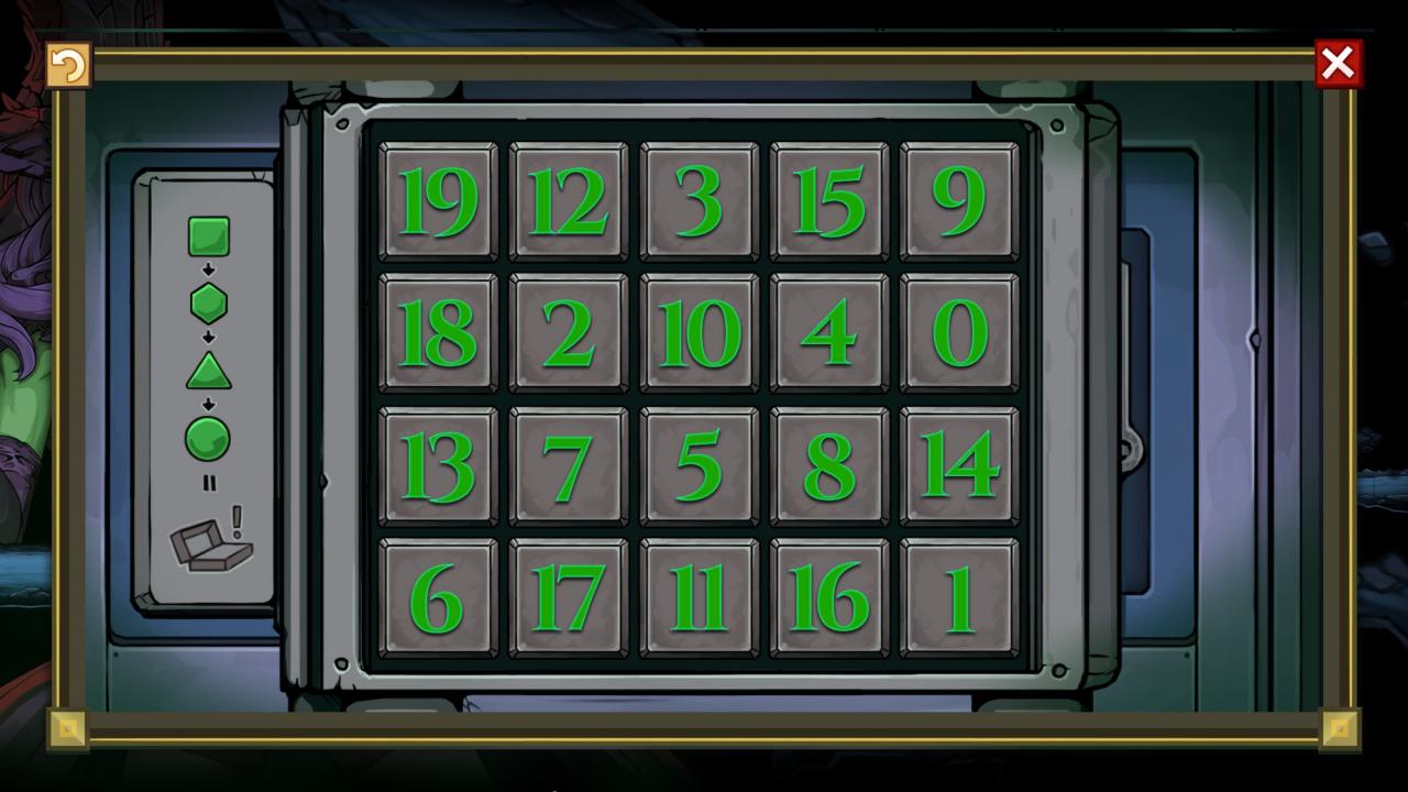 Pay attention to the newly revealed symbols and how many witches hats they display and Input them correctly on the keypad (6, 2, 1, 3):