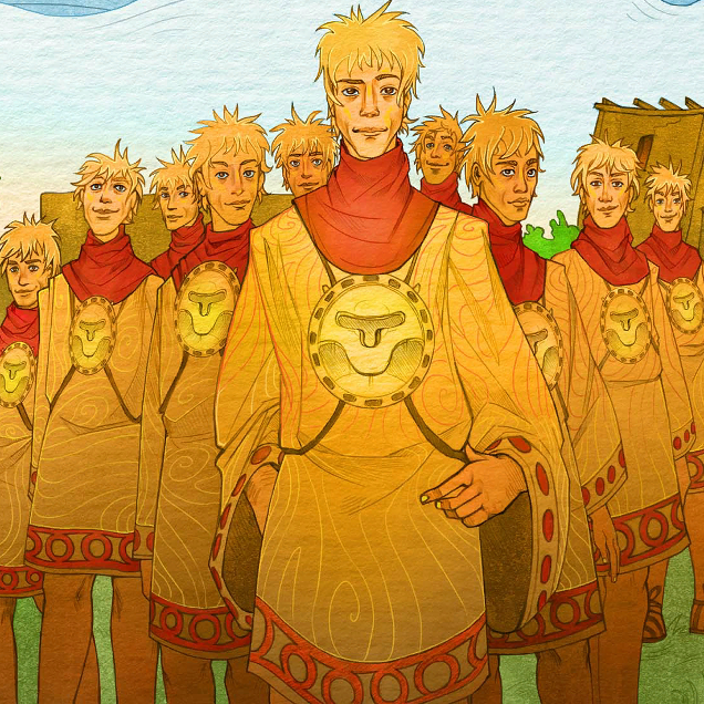 It’s not really clear what the Golden Men are—they’re portrayed as stupid creatures, not full gods and certainly not worthy of marrying even a divine attendant, and their template in the myth version of this song is a human man. On the other hand, the quester can call them solar fragments, their counterparts in Elmal’s myth are “small suns”, and they can make more of themselves from gold (the bones of solar gods).