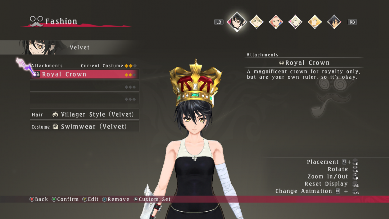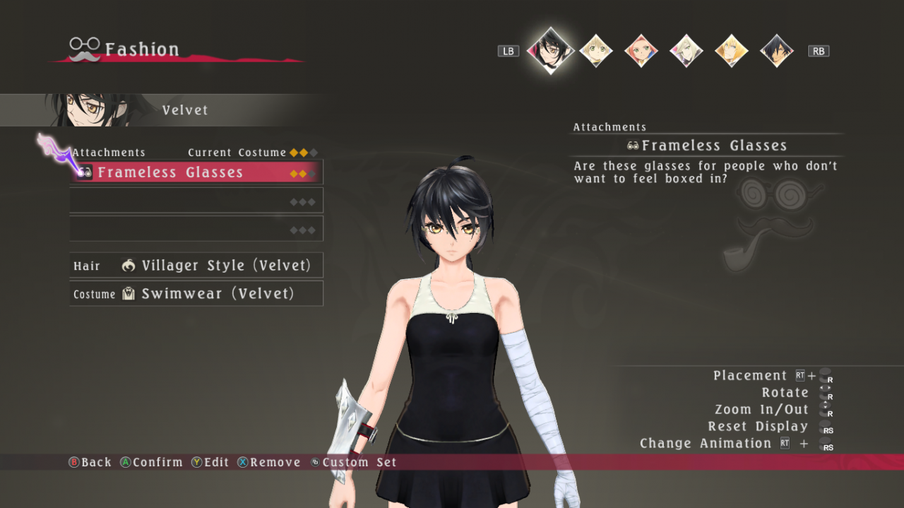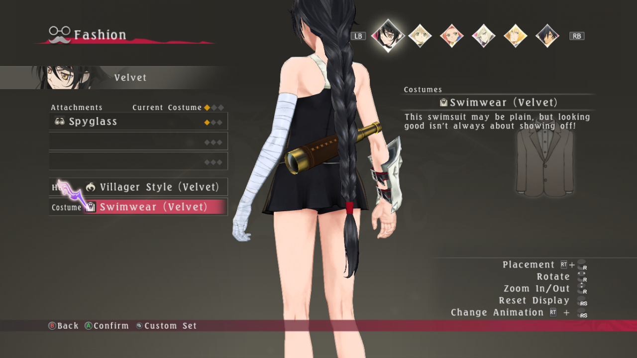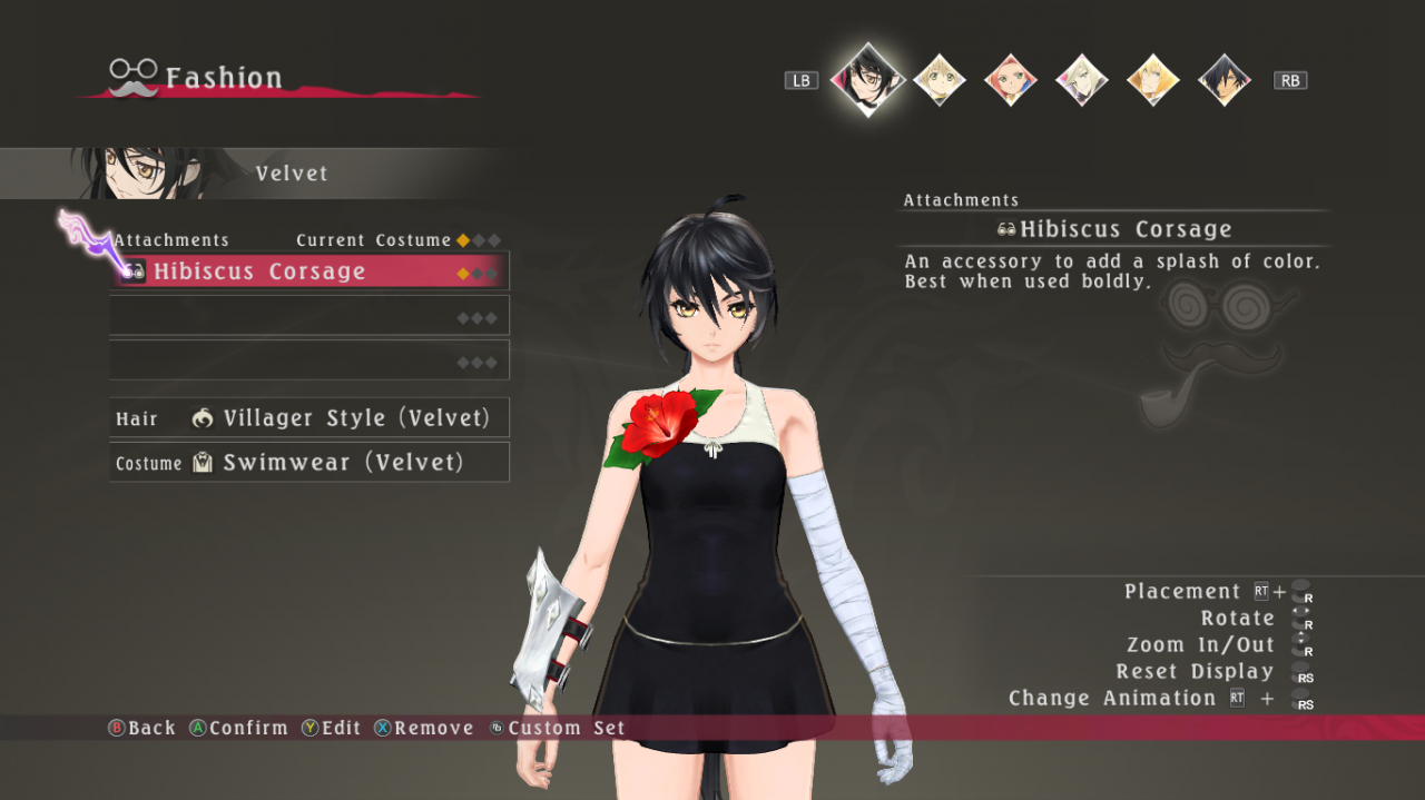 For clarity, the screenshots showcase every accessory on Velvet with her Swimwear and Villager Style hair.