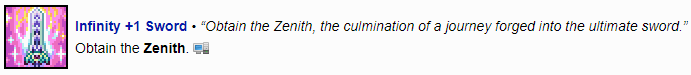 combine all sword thats we have(at hardmode anvil),we’re gonna abble to make the zenith :}