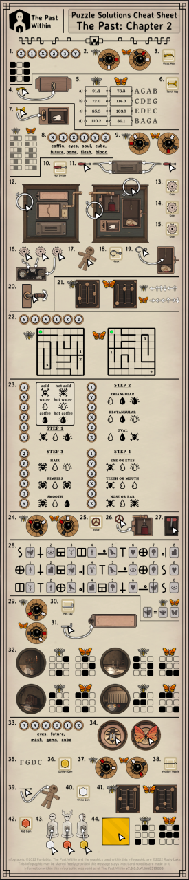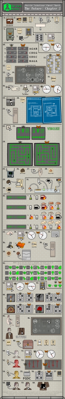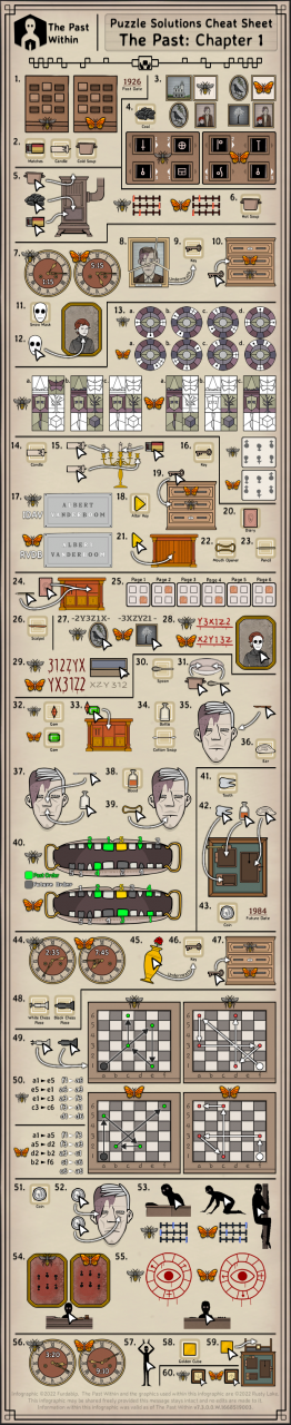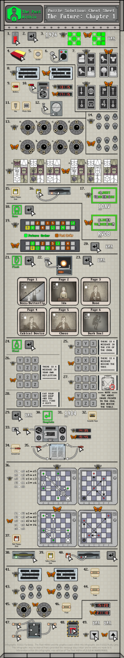 A complete set of puzzle solutions and walkthroughs for The Past & The Future in easy-to-scroll infographics.