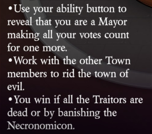 Uses their ability button to reveal that they are a Mayor making all their votes count for one more (1 use).